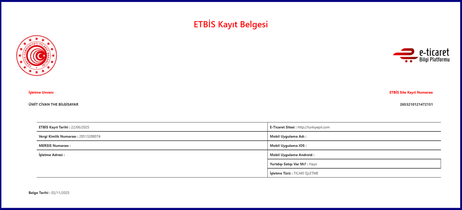 Elektronik Ticaret Bilgi Sistemine Kayıtlıyız – TürkiyePil Güvenli Alışverişin Adresi